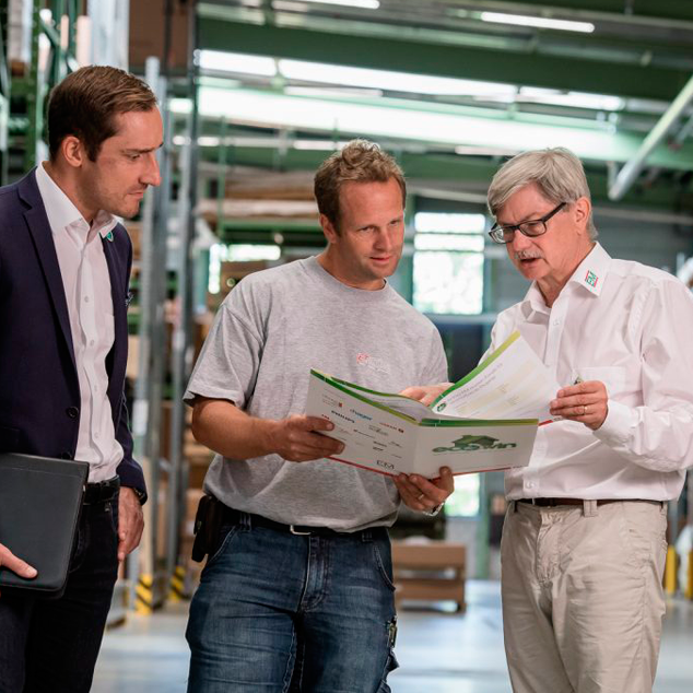 Willi Wild, EM ecowin Energieberater (rechts) mit dem EM e-mobility Berater Roberto Weichelt und Peter Siegenthaler, ETCOM AG. Willi Wild hat langjährige Erfahrung und unterstützt die Teilnehmer der EM ecowin Initiative.