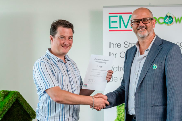 Der spontanen Äusserung während des ersten EM ecowin Basiskurses 2014 sollten Taten folgen. Der Elektroinstallateur erfuhr dort vom Gewinn. Oliver Binggeli meldete sich an und sicherte sich mit der Firma KREHA Elektro AG aus Cham den EM ecowin Award 2015. Auch dieses Jahr ist er wieder dabei und findet sich auf dem zweiten Platz.