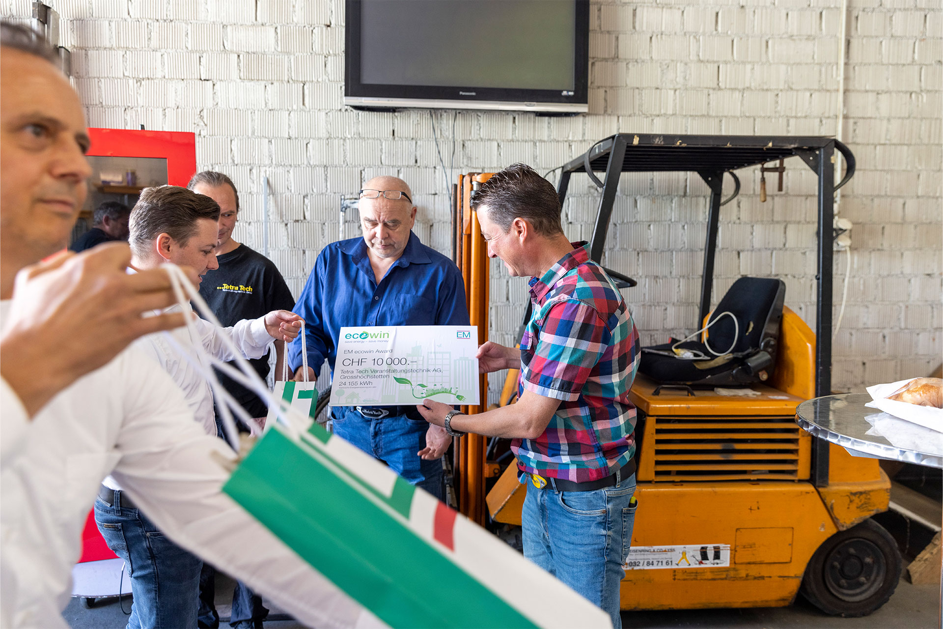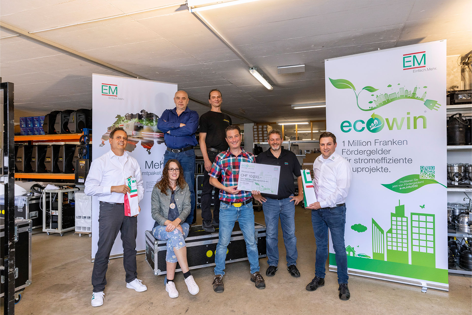 Mit der Initiative EM ecowin fördert die Elektro-Material AG mit jährlichen Fördergeldern von 1 Million Franken Stromsparmassnahmen und vergibt einmal pro Jahr den mit 10 000 Franken dotierten EM ecowin Award. Dabei handelt es sich um eine Auszeichnung für Elektroinstallateure, die Stromeffizienz-Projekte ihrer Kunden wirkungsvoll in die Tat umsetzen.