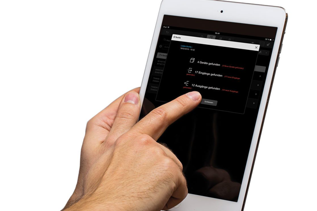 Heinz kann Stefan Müller drei Vorschläge für die Steuerung machen: Ein Touchpanel, eine IR-Fernbedienung und natürlich die Nutzung einer App für Smartphone und Tablet. Für die Bedienung per Touchpanel und App platziert Heinz optional den domovea-Server in der Hauptverteilung. Mit diesem kann Heinz später das System für die App des Bauherren anwenderfreundlich visualisieren.