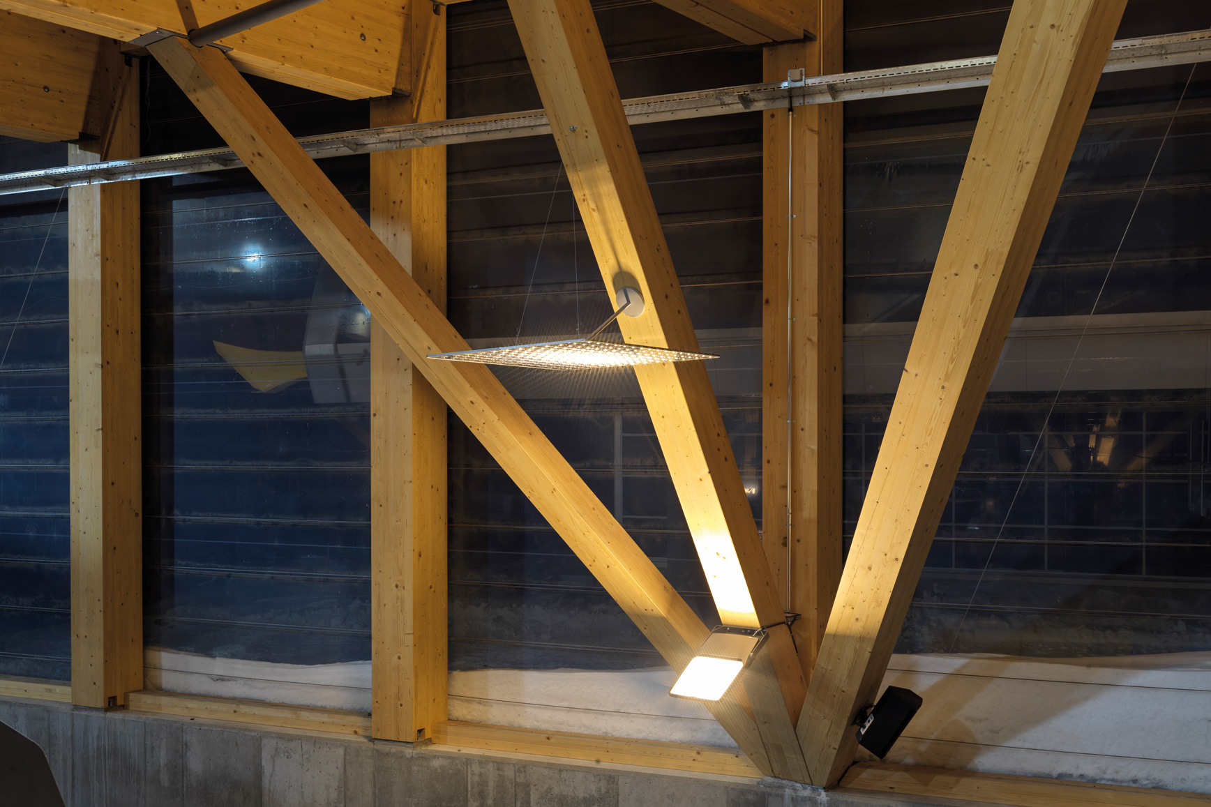 Wie wichtig die Berücksichtigung der besonderen Situation mit Wind und Kälte vor Ort ist, zeigte sich schnell: So stellten sich die ursprünglich vom Architekten für die Gondelhalle gewünschten Pendelleuchten aufgrund der teils auch im Innern der Stationen herrschenden Windverhältnisse als ungeeignet heraus. Zudem wären die Pendelleuchten unter Umständen einem für Wartungsarbeiten fest installierten Kran im Weg gewesen.