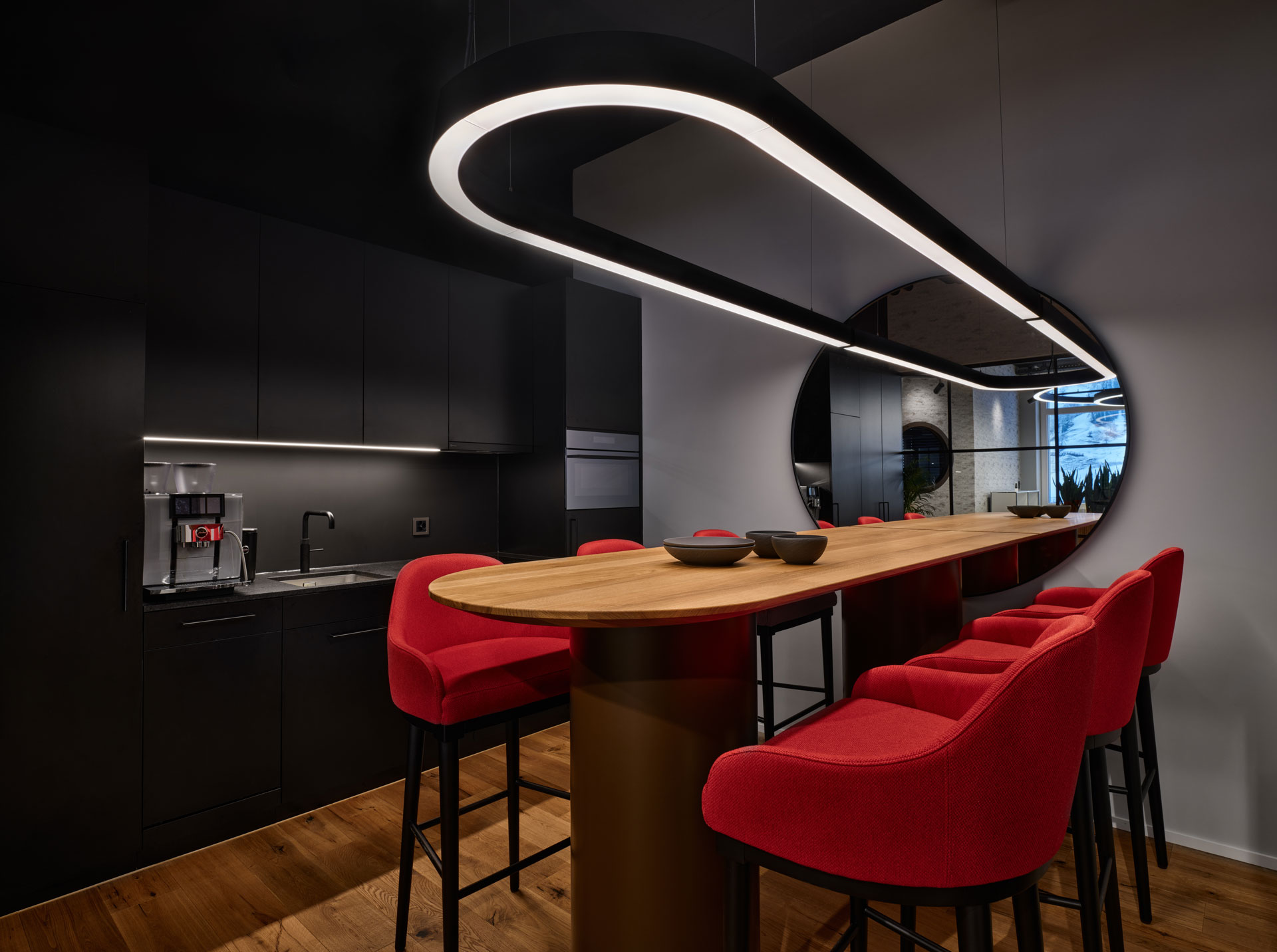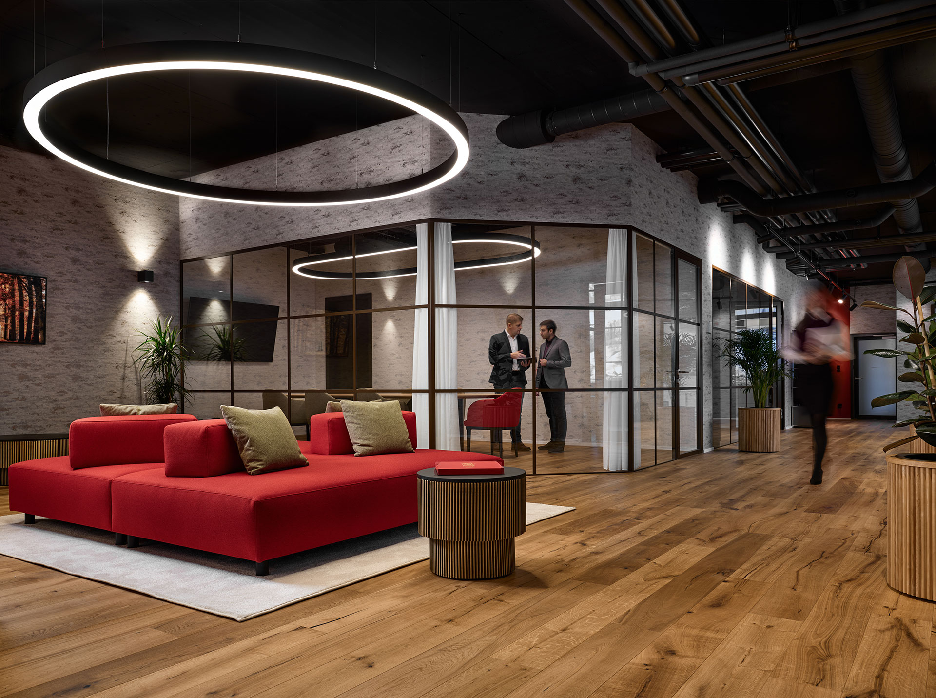 Nebst einem effizienten Arbeitslicht wünschte Sallaum Lines vor allem eine warme und angenehme Atmosphäre und unterschiedliche Lichtstimmungen, sowohl im Sitzungszimmer als auch in den Aufenthaltsbereichen. Es ging neben der Erfüllung der Norm vor allem um Atmosphäre und Emotionen. Die Mitarbeitenden sollten sich wohlfühlen und ihr Arbeitslicht individuell anpassen können – das entspricht dem Zeitgeist und einer qualitativen Lichtplanung.