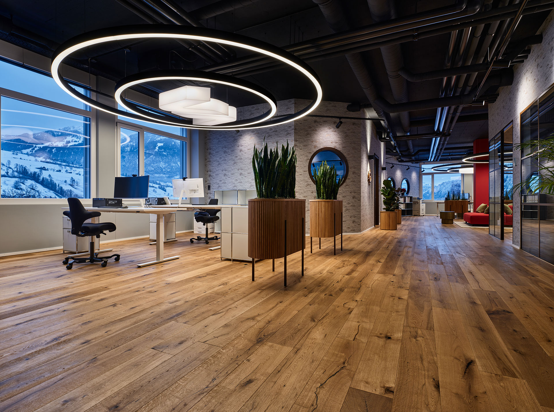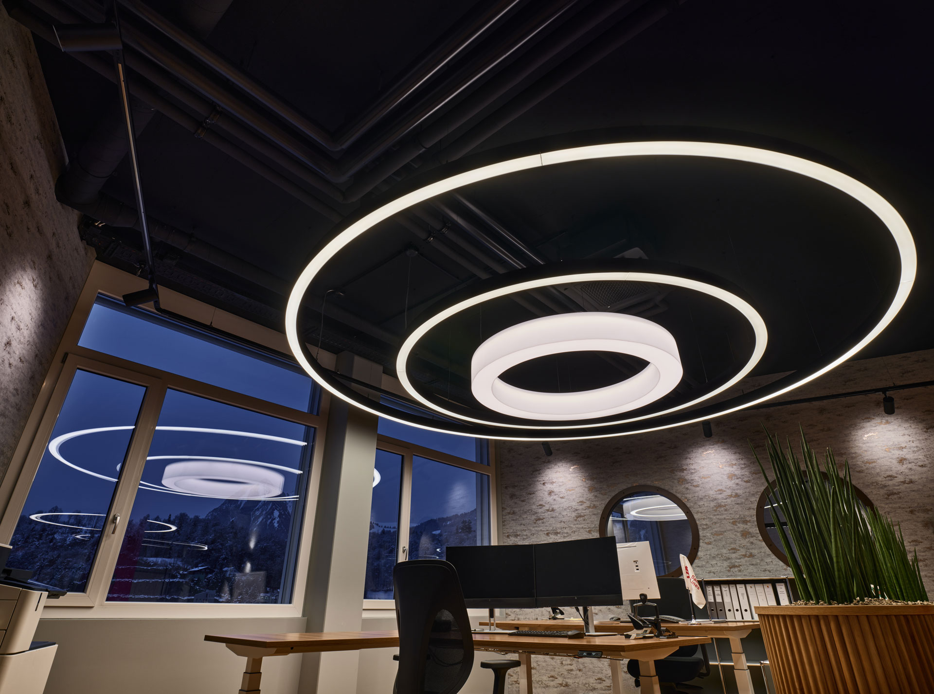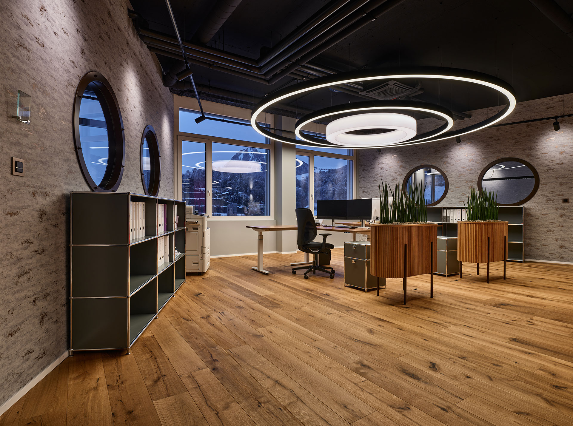 Im neuen Firmensitz der Sallaum Lines Switzerland SA in Sarnen wurde ein Beleuchtungskonzept umgesetzt, das Arbeitsfunktionalität mit Wohlfühlatmosphäre verbindet und dabei die Grenzen des technisch Machbaren austestet. Die besondere und extravagante Gestaltung erforderte massgeschneiderte Sonderanfertigungen und eine intensive Koordination. Albego Real Estate und EM Licht haben diese Herausforderung gemeistert und ein innovatives Lichtdesign geschaffen, das den einzigartigen Charakter des Unternehmens widerspiegelt.