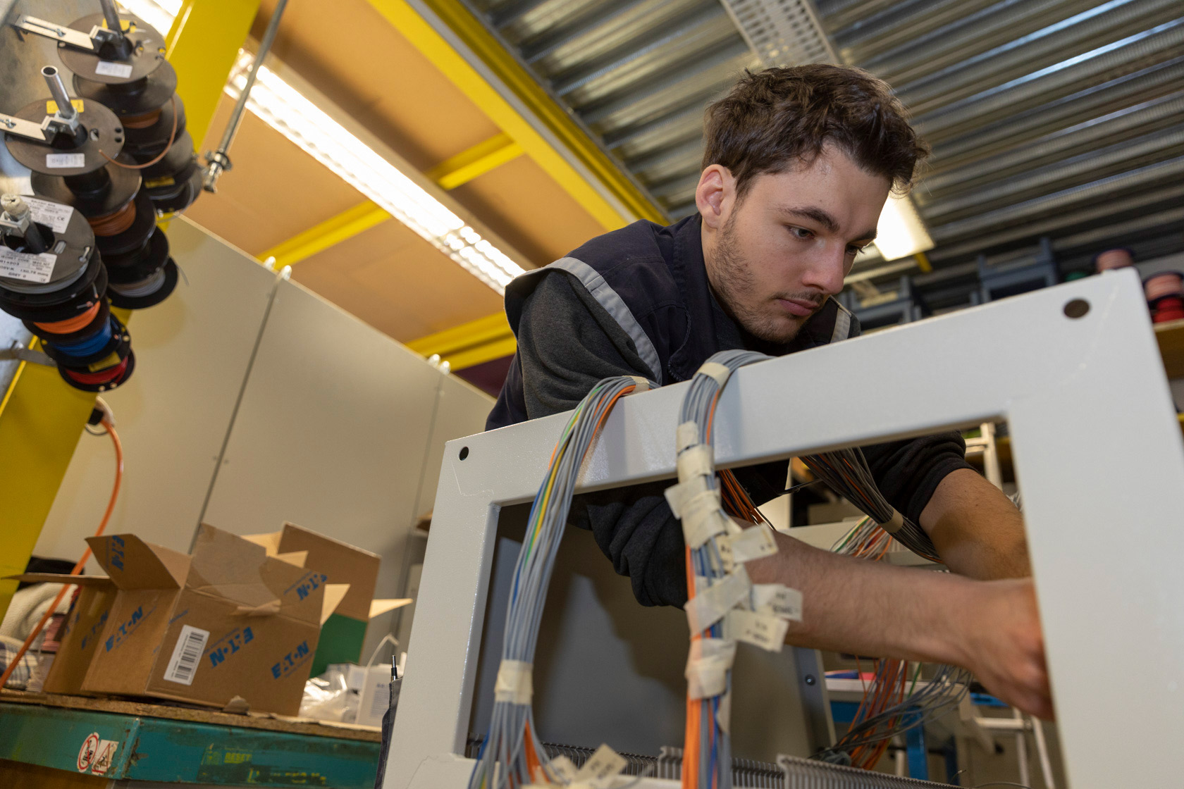 Jean-Franco Ganzer (Gründer von Applica SA), Christophe Perren (Geschäftsführer und Projektleiter) und Mario Tartaglione (Verantwortlicher für die Montage und Änderungsüberwachung) luden EM ein, am Hauptsitz in Siders (VS) einen Blick hinter die Kulissen von Applica SA zu werfen. Das Unternehmen hat sich auf die Herstellung und Verkabelung von Elektroanlagen in den Bereichen elektrische Verteilung, Steuerung und Automation spezialisiert. Seit mehr als 30 Jahren kann Applica SA mit hoher Kompetenz und Bereitschaft zur kontinuierlichen Anpassung an strukturelle und technologische Veränderungen und Marktentwicklungen Erfolge verbuchen.