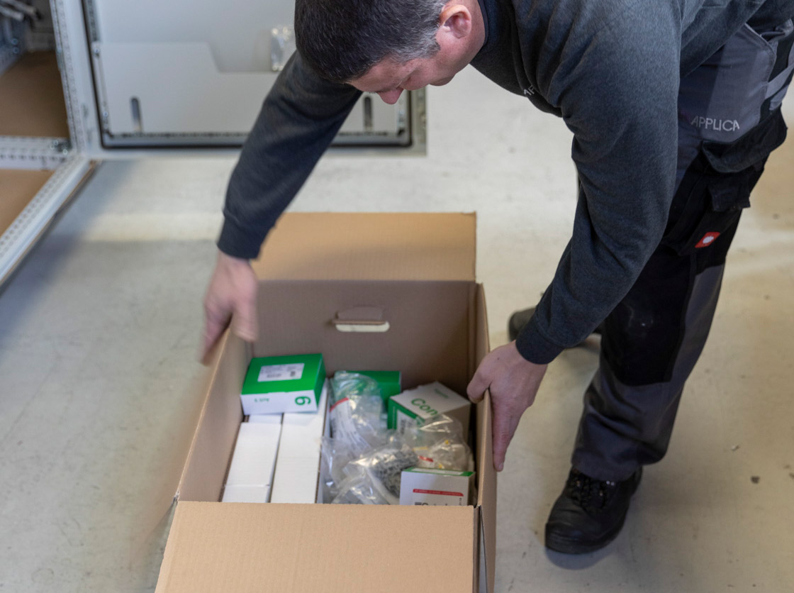 Gleich zu Anfang übermittelten wir EM eine Liste der benötigten Materialien mit den jeweiligen Lieferterminen. Das Material war immer verfügbar, wenn wir es brauchten», erinnert sich Christophe Perren. «Ohne die logistische Unterstützung seitens EM hätten uns die abweichenden Lieferfristen verschiedener Hersteller die Aufgabe erschwert. Dank EM konnte unser Team Ressourcen und Zeit einsparen und sich ganz dem Kerngeschäft widmen. Durch die optimierte Logistik und einfachere Organisation konnten wir zudem eine höhere Produktivität erreichen.» Da die Kits bei EM zusammengestellt und verpackt wurden, mussten die Mitarbeiter von Applica SA die massgeschneiderten Pakete nur noch entgegennehmen. So konnten sie sich ganz auf die Montage, Verkabelung und Kontrolle der Schaltschränke in ihrer Werkstatt konzentrieren.