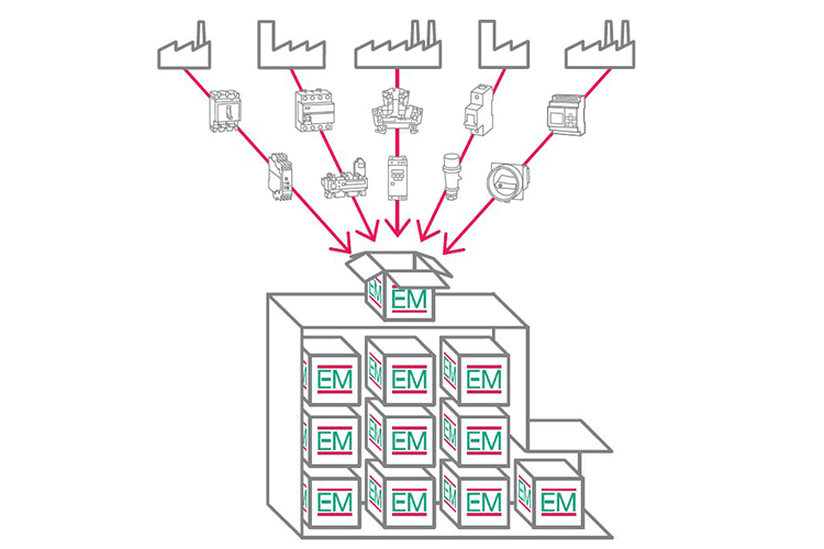 Für jeden der 96 Schaltschränke wurde Elektromaterial von einer grossen Anzahl Zulieferern benötigt. Wenn man angesichts einer solchen Aufgabe auf einen Partner zählen kann, der die Bestellungen zentral verwaltet und bedarfsgerecht in Form von Kits ausliefert, ist dies ein beträchtlicher Vorteil. Die versierten Fachkräfte von EM beraten die Kundenund zeigen auf, wie sich die Kits nach Mass mit hochwertigen Teilen zusammenstellen lassen. Bei der Konfiguration der Teillieferungen wurde in Absprache mit Applica SA eine Terminund Bauteilplanung erarbeitet. «Das Kitting-Konzept von EM kam für uns wie gerufen.