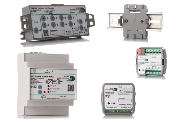 DATEC vertreibt auch unter dem eigenen Namen Produkte. So wie zum Beispiel dem KNX/DALI Aktor für Hohldeckenmontage, komplett über KNX gespiesen, dem 4-Fach 10A Schaltaktor mit 8 Binäreingängen, dem 8-Fach Binäreingang mit der Möglichkeit der 7-fachen Temperaturmessung, dem Leistungsregler für Deckenventilatoren oder den Netzteilen für 5V/12V/24V/USB.