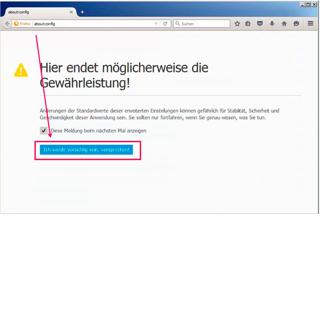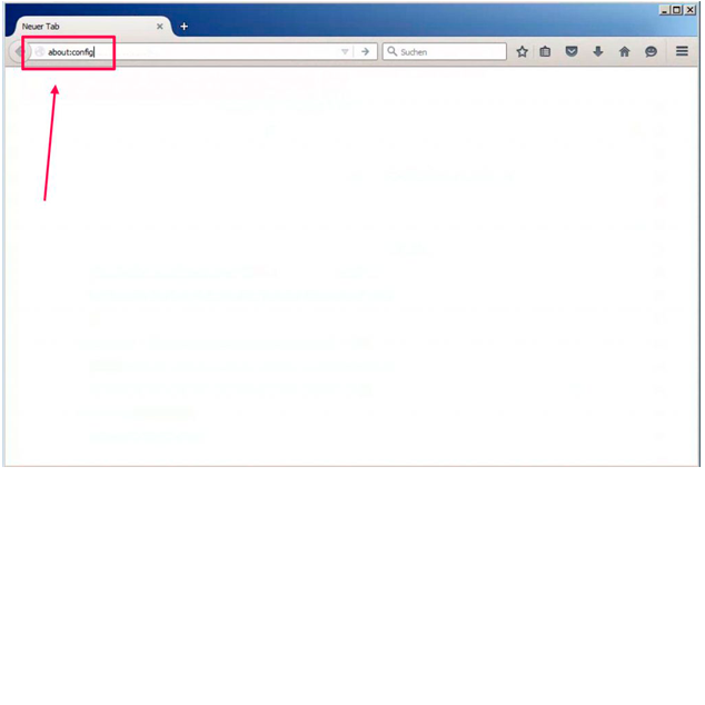 - In der Adresszeile von Firefox about:config eingeben.