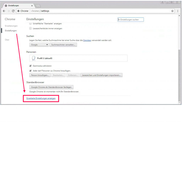 - Dort „Erweiterte Einstellungen anzeigen“