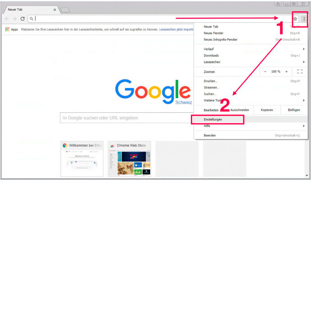 - Im Menü die “Einstellungen” anklicken