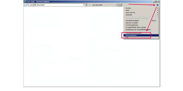 - Menü „Extras“ wählen, auf „Internetoptionen“ klicken