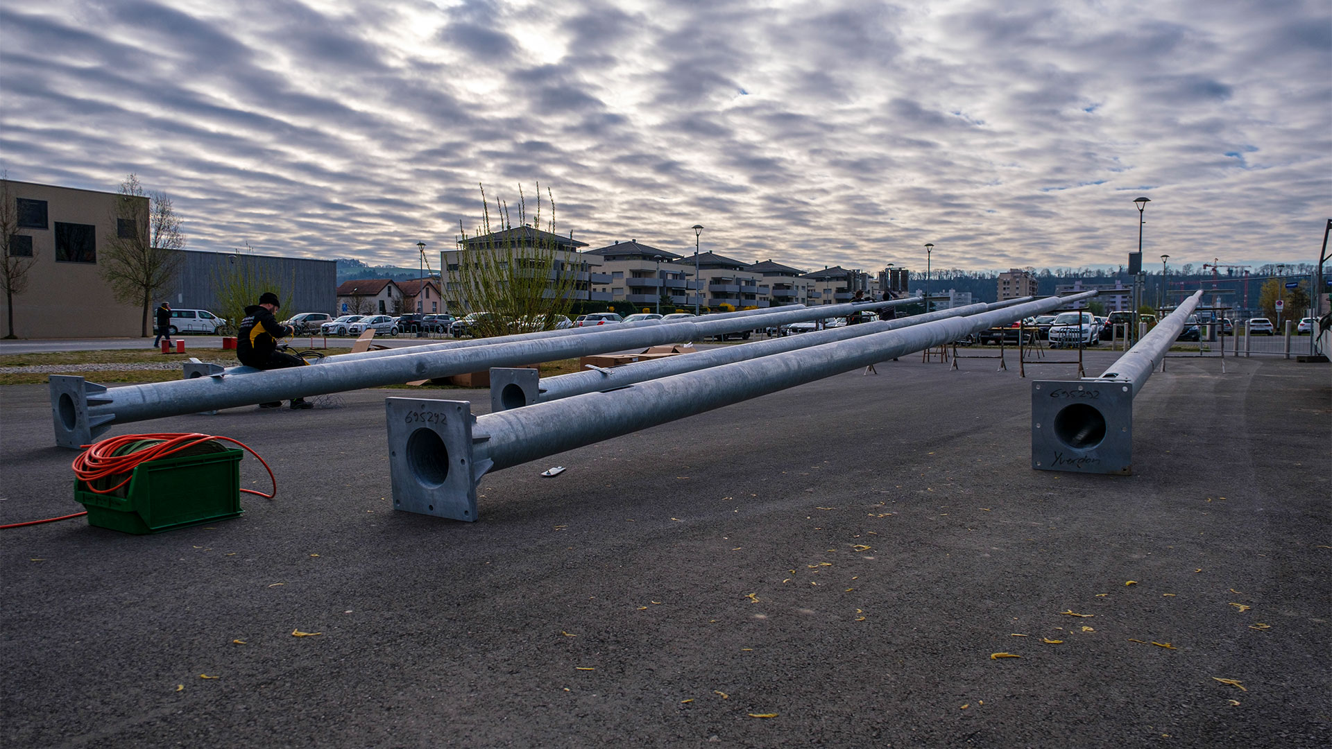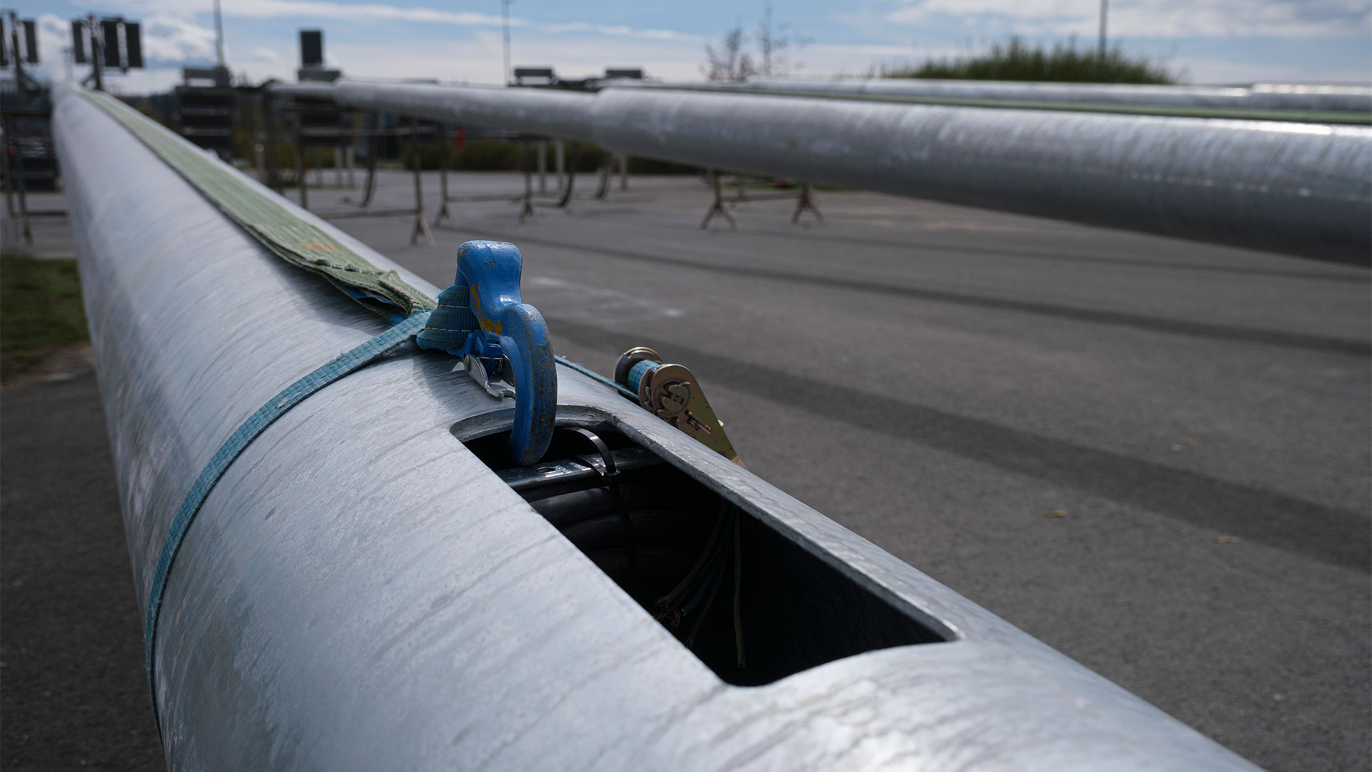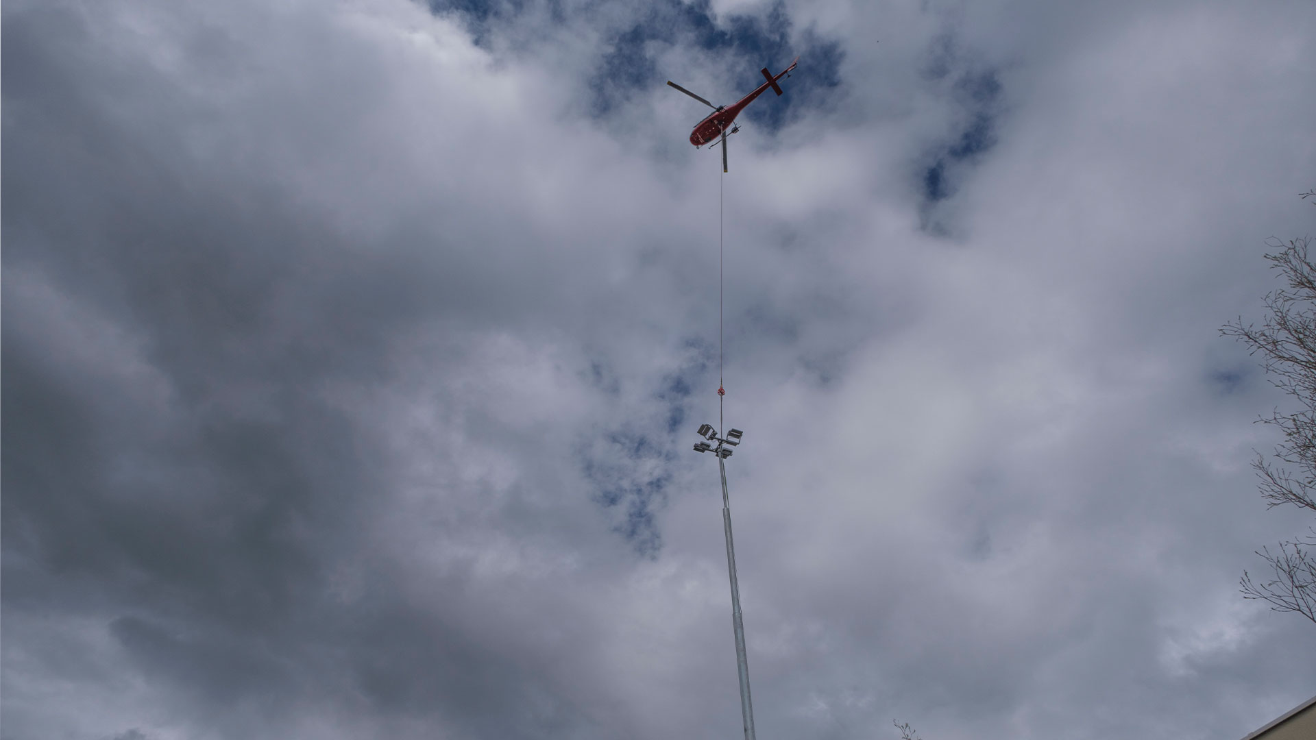 5 Leuchtmasten in weniger als 1 Stunde – Helikoptereinsatz für eine effiziente Montage und Umsetzung
