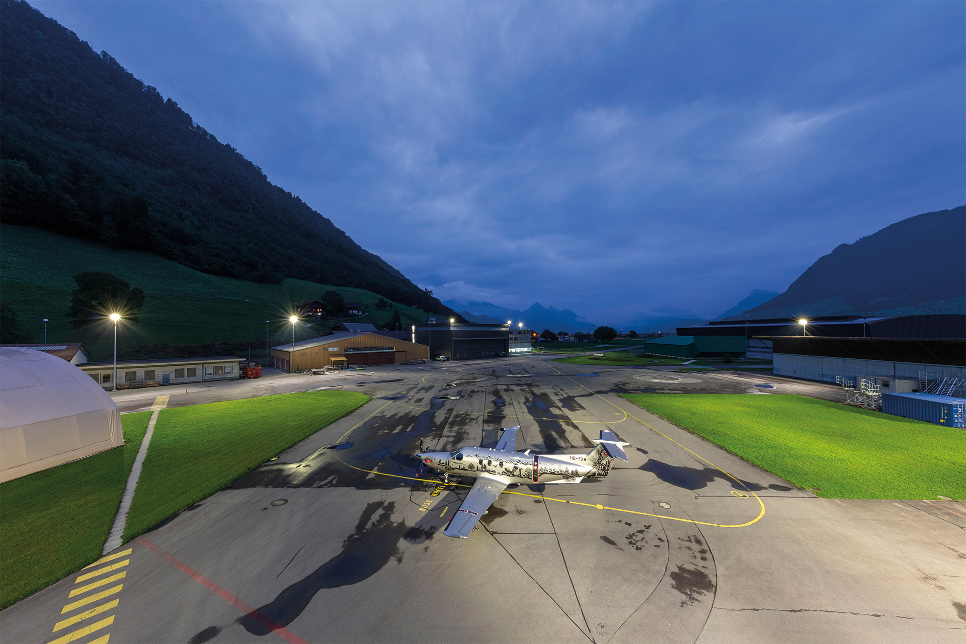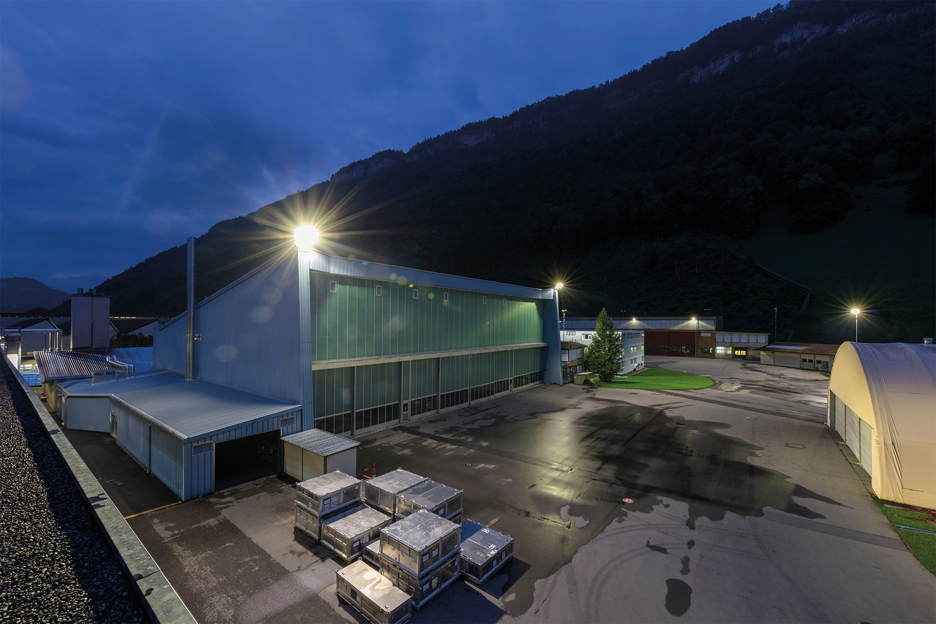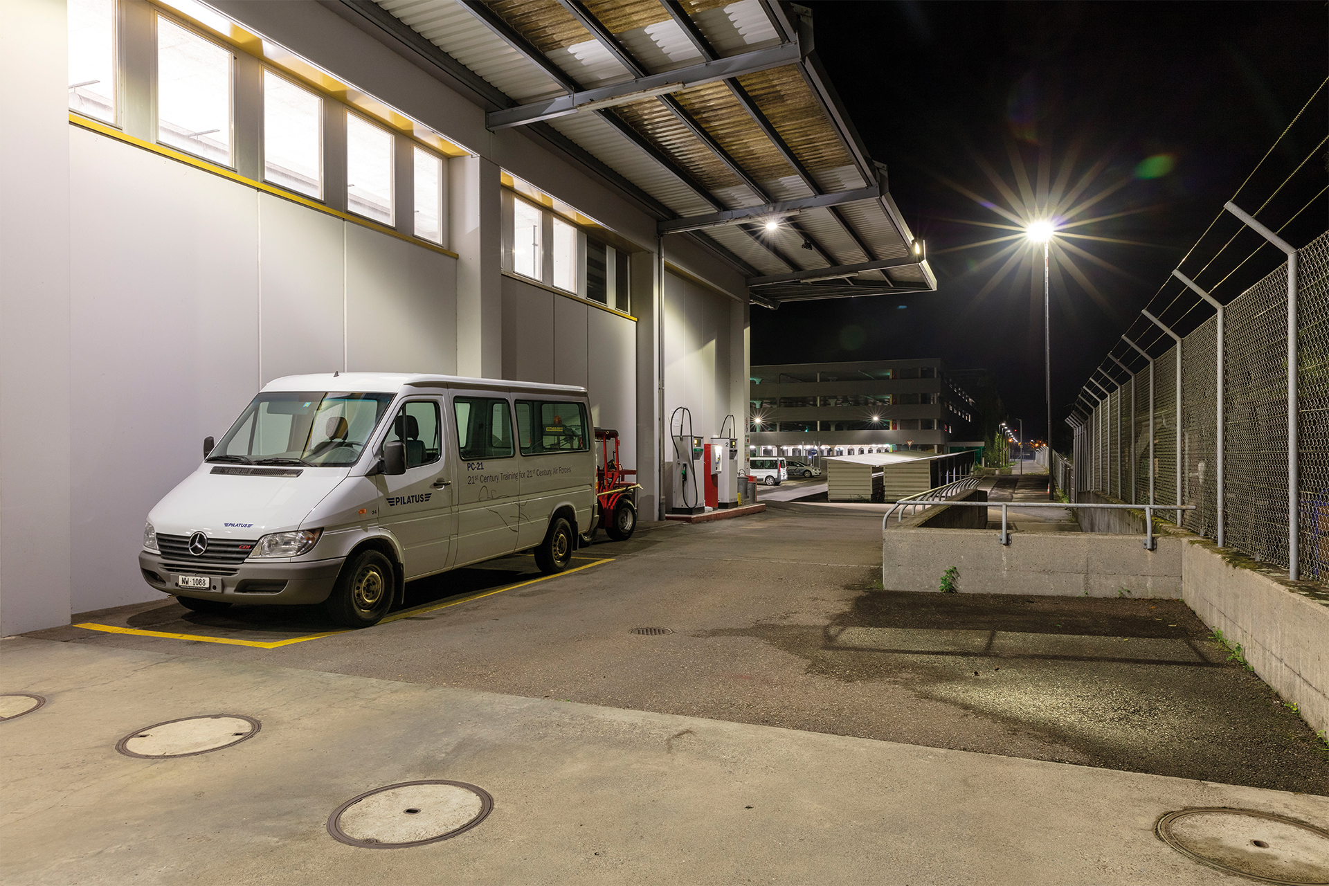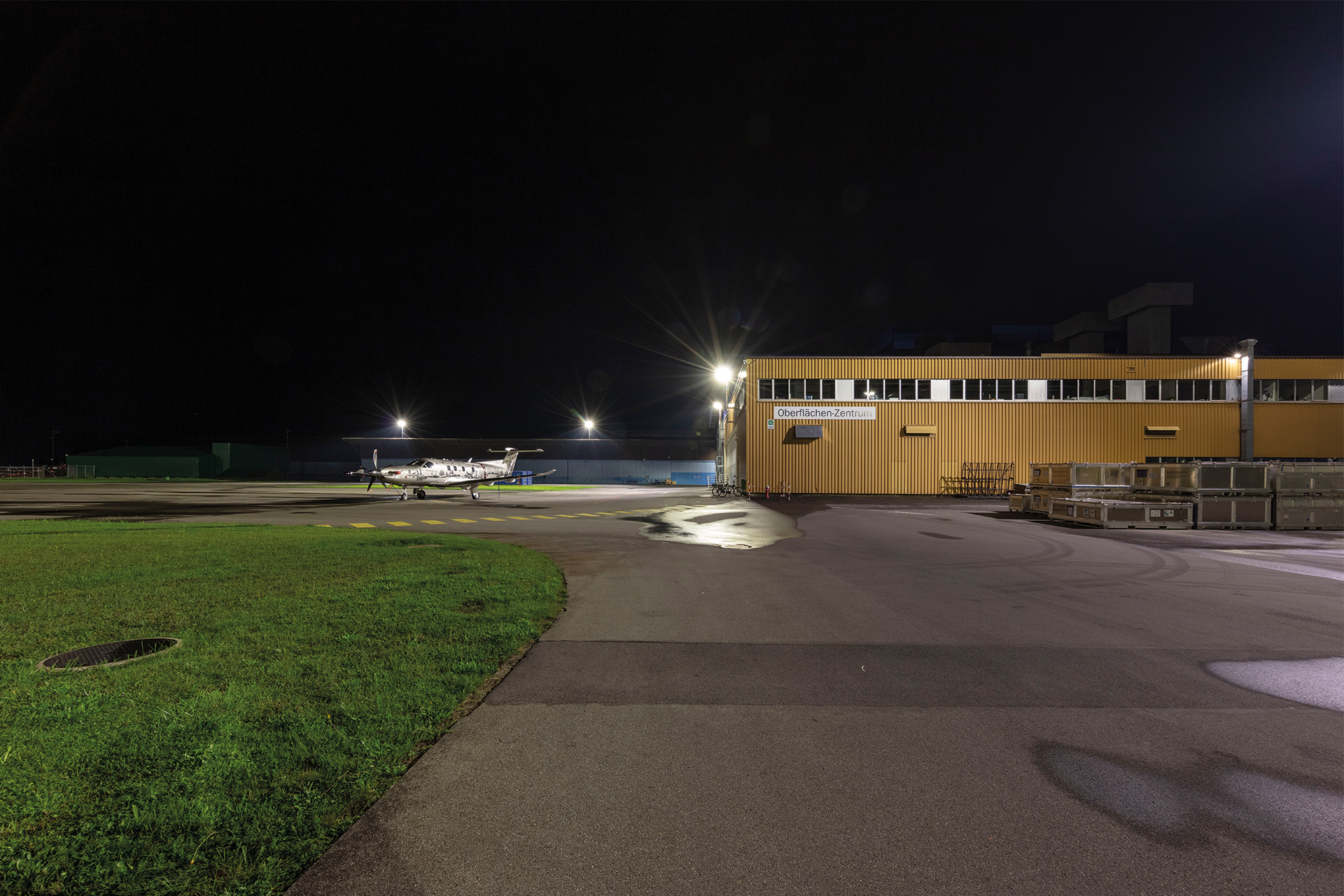 Lichtprojekt Arealbeleuchtung Pilatus Flugzeugwerke AG Stans