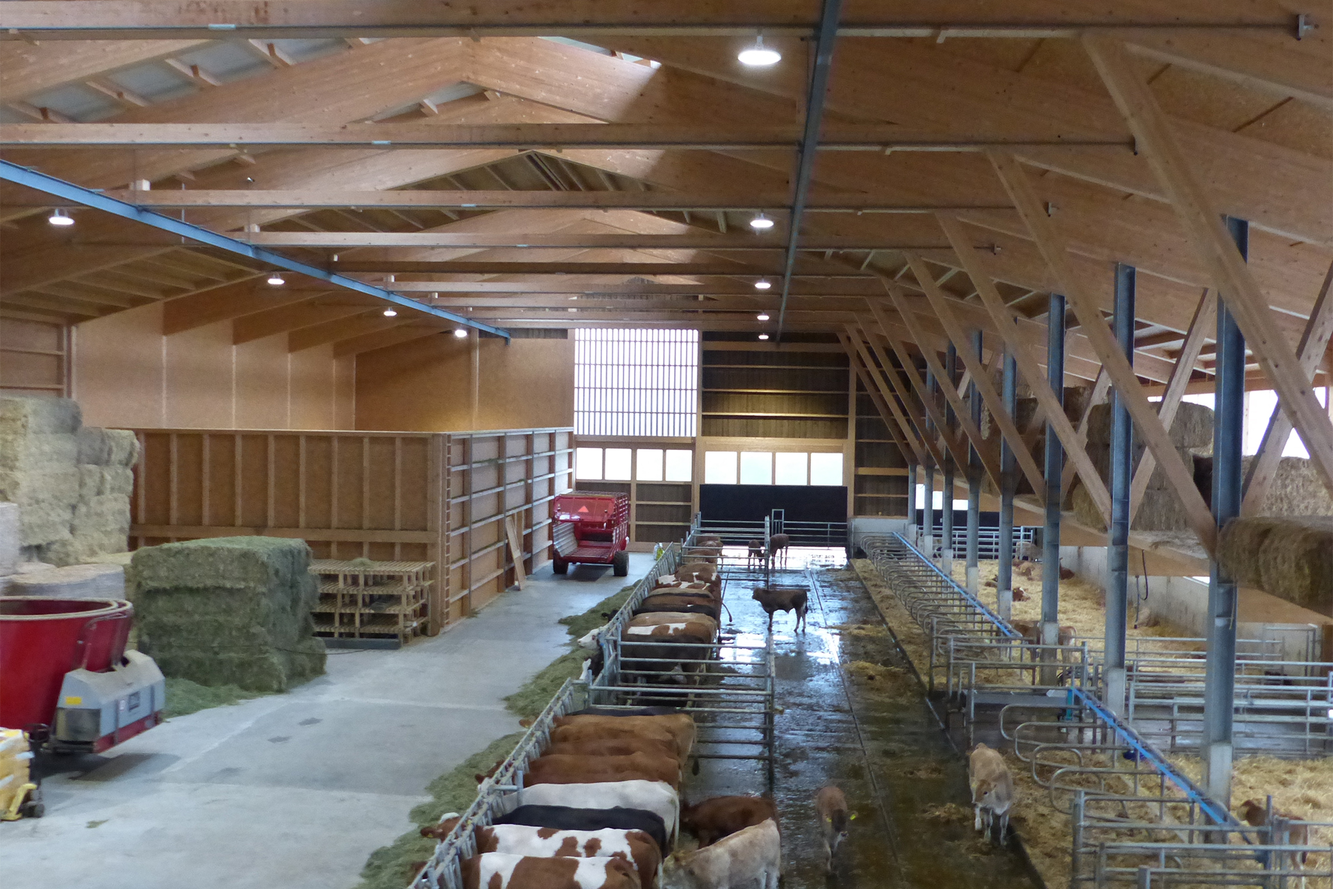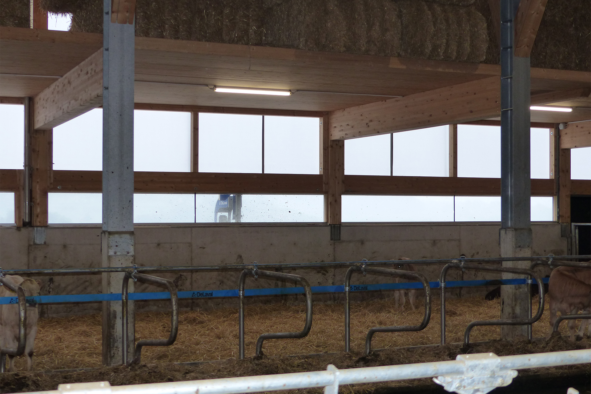 Der Landwirtschaftsbetrieb von Familie Jöhl, s’Moos, liegt auf 850 m ü. M. im Zürcher Oberland. Für den Mutterkuhbetrieb wurde ein neuer, tierfreundlicher Laufstall gebaut, bei dem grosser Wert auf normen- und artgerechte Beleuchtung gelegt wurde. In der Planung und Umsetzung setzte EM Licht auf eine geeignete Beleuchtung, die nicht nur das Wohl der Tiere berücksichtigt, sondern auch effizient und nachhaltig ist.