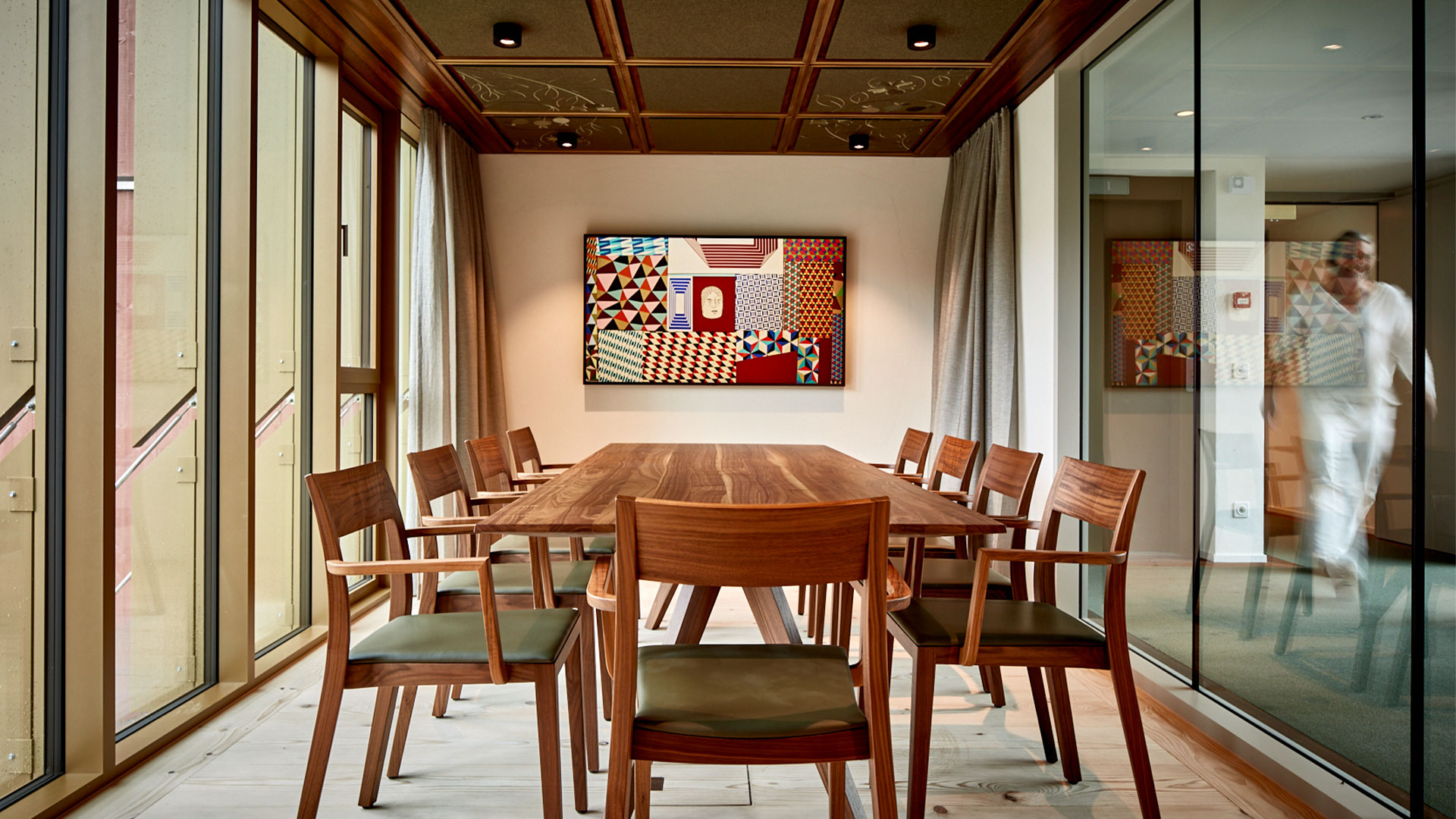 EM Licht unterstützte die Vereinigung  der Elemente mit einer individuellen  Lichtplanung und stimmigen Beleuchtung  in Zusammenarbeit mit dem  Innenarchitekten und dem  Elektroplaner.