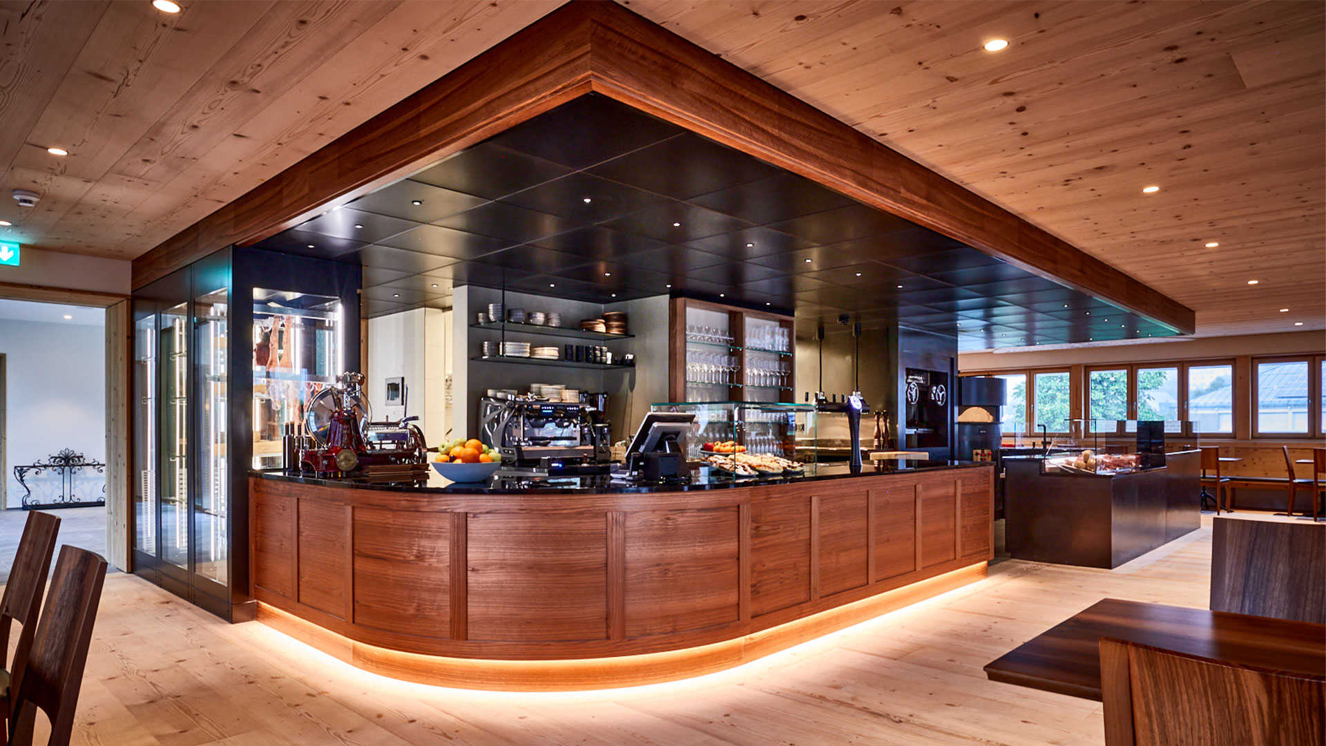 Beim Neubau des Dorfhus Gupf waren Ambiente und Wohlgefühl die zentralen Aspekte. Für den Innenarchitekten war es daher wichtig, einen Ansprechpartner zu haben, der seine Ideen umsetzen konnte und bei der Produktwahl unabhängig ist. Damit sich die Beleuchtung perfekt an die Umgebung anpassen und gleichzeitig ihren Zweck erfüllen konnte, kamen Sonderleuchten zum Einsatz. Im Weinkeller hinter den Regalen, in den Handläufen des Treppenhauses und in den Geländern wurden massgefertigte LED-Profile eingesetzt – ebenso im Bereich Bar und der Theke, wo die LED-Profile teilweise gebogen gefertigt wurden.