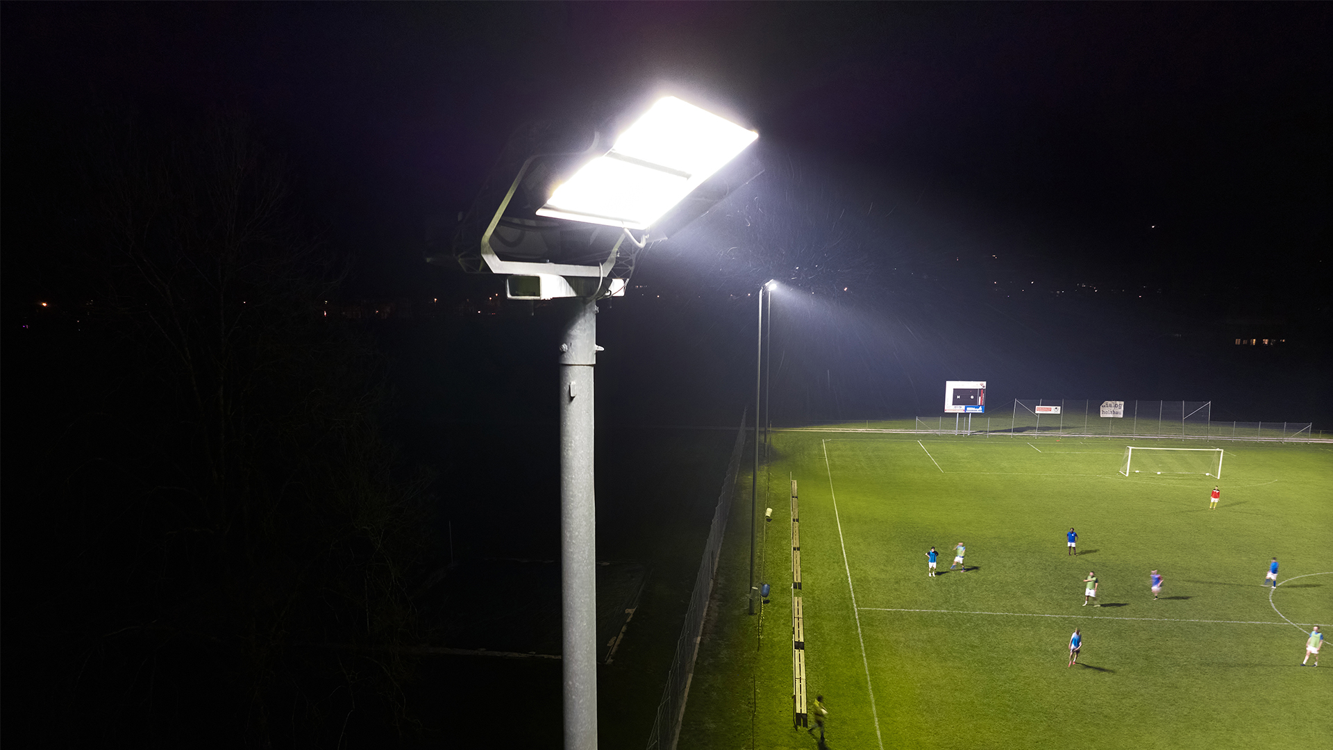 2025 feiert der FC Langnau sein 100-jähriges Jubiläum. Mit der Sanierung der Beleuchtung des Fussballplatzes hat der Fussballclub bereits heute dafür gesorgt, dass die Sportler auch in Zukunft bei optimalen Lichtverhältnissen trainieren und spielen können. Da die bisherige Lichtinstallation die Beleuchtungsnorm für den Amateurbetrieb nicht mehr erfüllen konnte, wurden die Experten von EM Licht mit der Neuplanung betraut. Ihr Ansatz überzeugte: Alles aus einer Hand – von der Lichtberechnung über die Kontrolle der Masten bis hin zur Lieferung und Montage. Auch dass Bestehendes erhalten werden konnte und der Installationsaufwand durch den 1:1 Ersatz gering ausfiel, erfüllte den Wunsch nach einer wirtschaftlichen Sanierung.