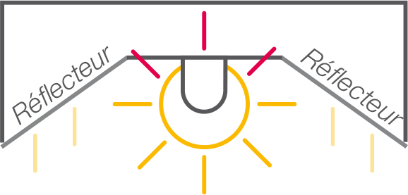 Les tubes LED ne diffusent pas la lumière comme les sources lumineuses FL. Le flux lumineux modifié ainsi que les caractéristiques du rayonnement influencent l’éclairement ainsi que la répartition et l’homogénéité de la lumière. Il faut veiller à respecter l’éclairement requis.