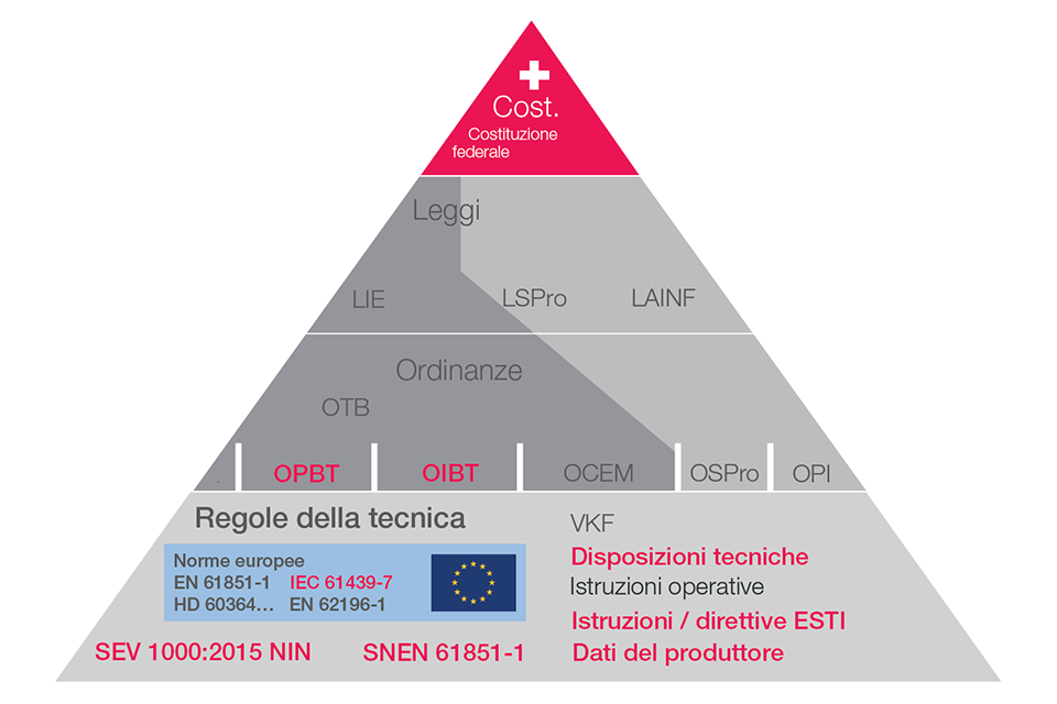 La piramide delle norme descrive la gerarchia delle leggi, ordinanze e dei codici della buona pratica rilevanti.