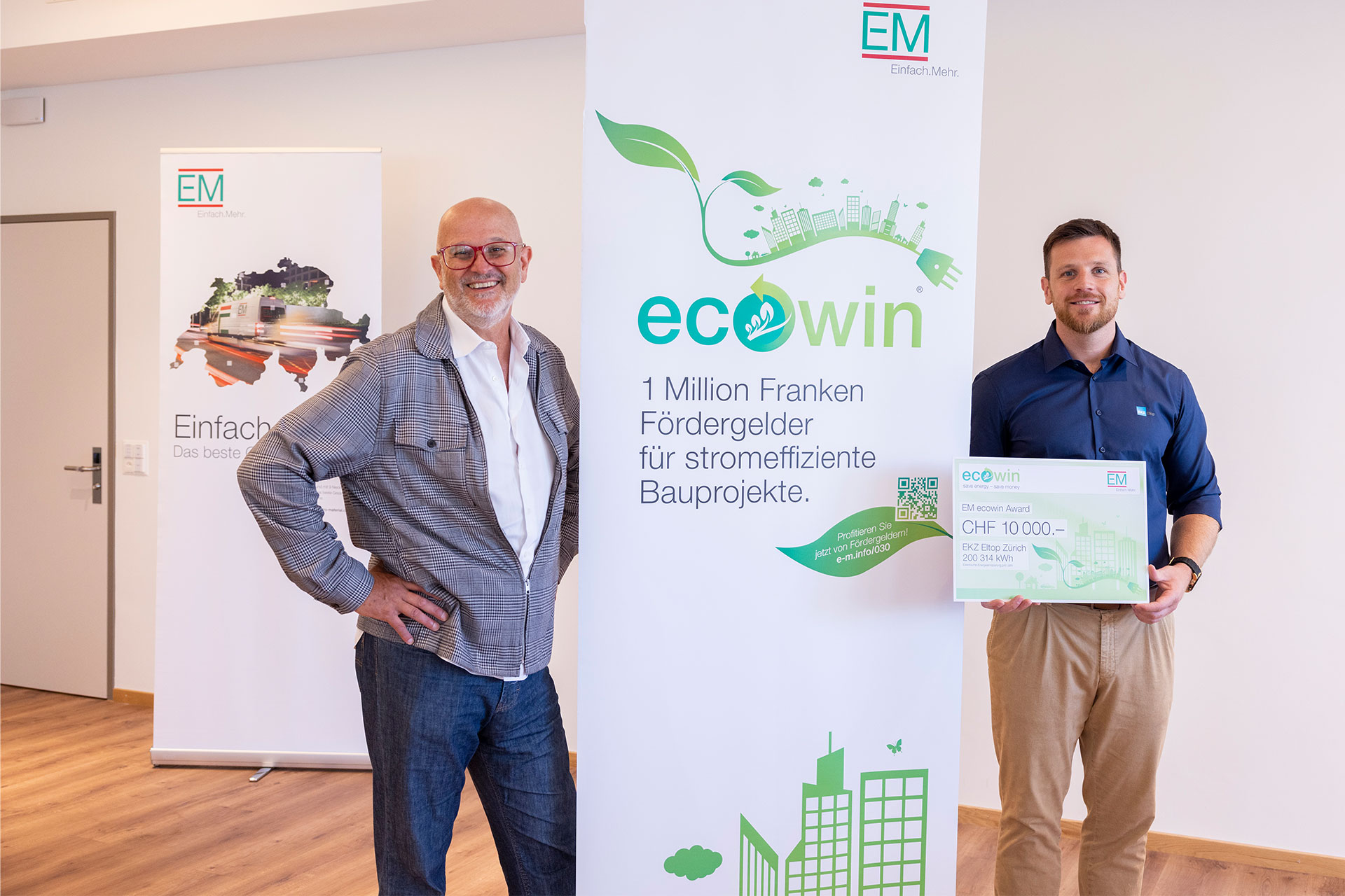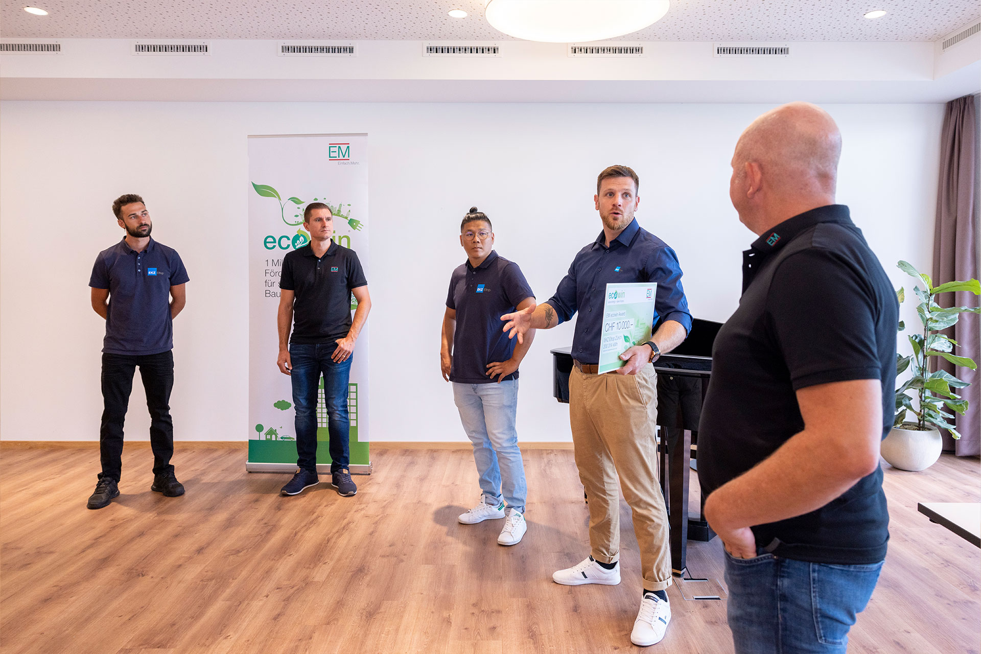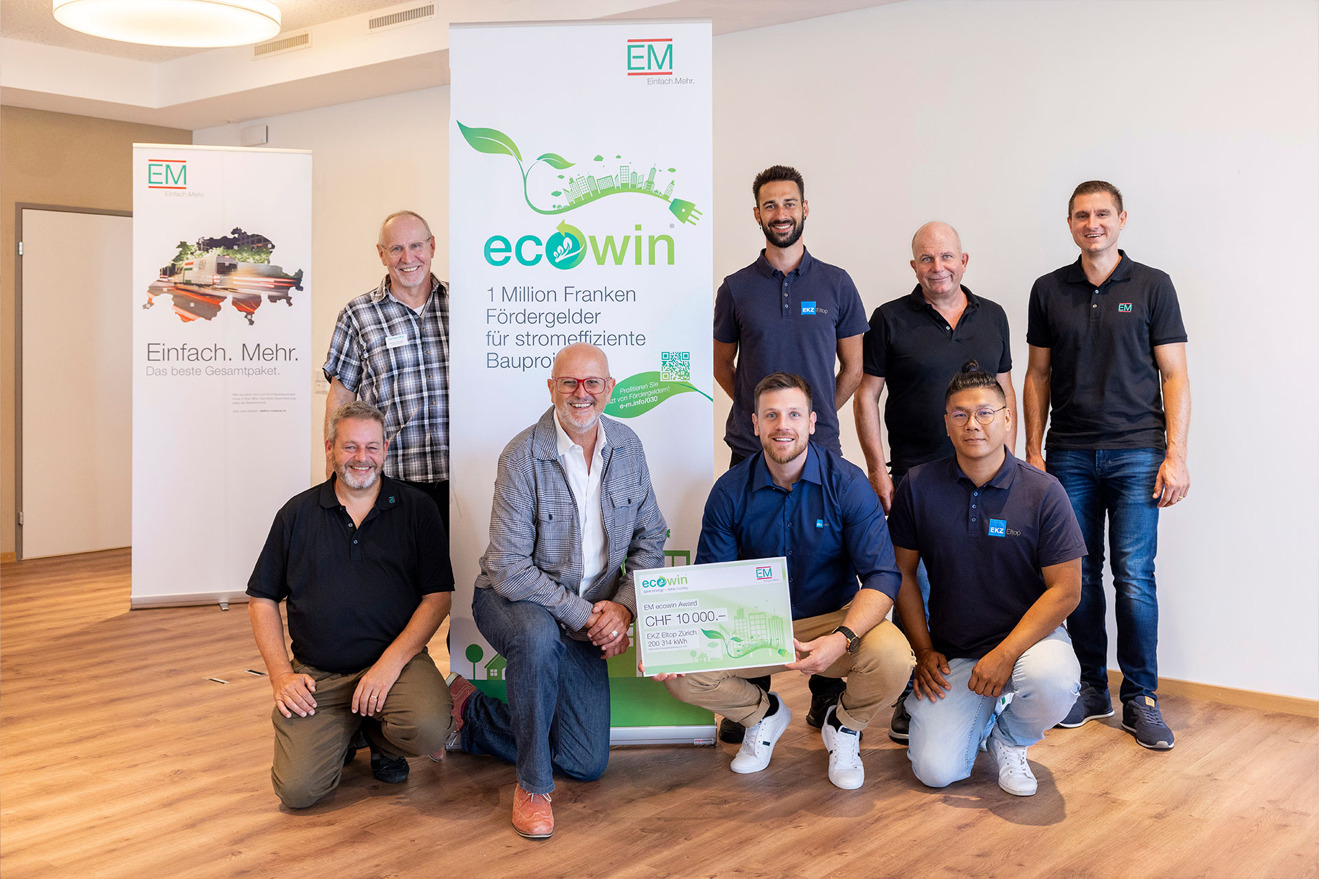 Il 25 luglio 2022 Markus Kuster, responsabile di progetto EM ecowin, ha tributato i giusti onori agli orgogliosi vincitori in occasione dei festeggiamenti per la vittoria organizzati a Burgdorf, riassumendo il senso e lo scopo dell’impegno profuso da EM: «EM si adopera per la tutela dell’ambiente e ha dato vita nel 2014 al programma EM ecowin. Grazie ai tre progetti Senevita, la filiale EKZ Eltop di Zurigo ha messo a segno un risparmio totale di energia pari a 200314 kWh e consentito al Gruppo di beneficiare di incentivi per oltre 18000 franchi. Reto Furrer aveva appreso da esperienze precedenti quanto potesse essere semplice richiedere incentivi e indennizzi per le spese. Siamo felici che lui e il suo team si siano aggiudicati con questi tre progetti anche l’EM ecowin Award oltre al premio in denaro di 10000 CHF.».