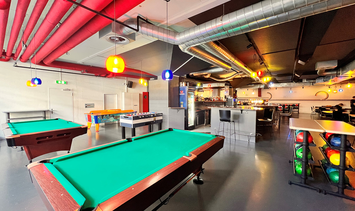 I lampadari realizzati con stampante 3D costituiscono l’elemento centrale. Creano un’atmosfera piacevole e invitano gli ospiti dall’ingresso alle piste da bowling, ai tavoli da biliardo e al bar. Sono realizzati in materiale riciclabile e stampati singolarmente con un processo di stampa 3D. Partendo da un progetto di base, la dimensione dei lampadari, il colore, la struttura e il motivo sono stati adattati ai desideri del cliente finale. Per facilitarne la manutenzione ai gestori, le lampade stampate in 3D sono dotate di lampadine LED retrofit, affinché l’intensità e il colore della luce possano essere regolati individualmente. Tutte le lampade possono essere regolate in base all’atmosfera desiderata tramite dimmer universali centralizzati. Gli esperti di illuminazione di EM Luce hanno supportato i gestori e gli installatori elettricisti dall’idea iniziale alla progettazione illuminotecnica e al coordinamento del progetto, fino alla realizzazione. Il nuovo sistema di illuminazione, che si distingue per il suo tocco vivace e la sua modularità, convince clienti e operatori e trasforma l’ambiente, prima piuttosto tecnico e freddo, in un invitante luogo di incontro.